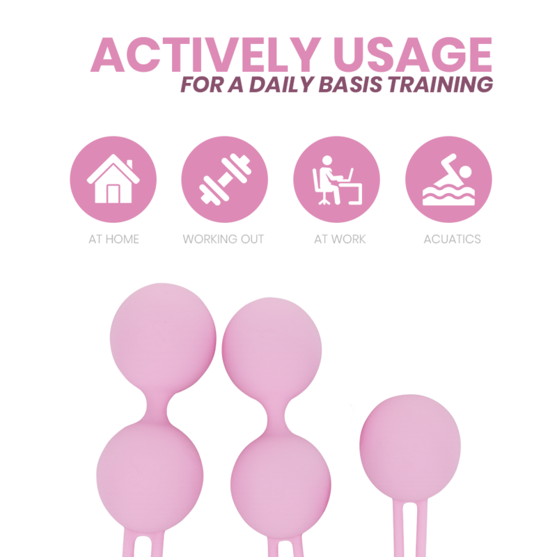 Santé du bassin intimichique II ; Basés sur la réalisation des exercices de Kegel, développés par le Dr Arnold Kegel, il s'agit d'une série de contractions et de relaxations vaginales qui renforcent le muscle pubococcygien (PC) et le groupe musculaire du plancher pelvien en augmentant progressivement les poids.
