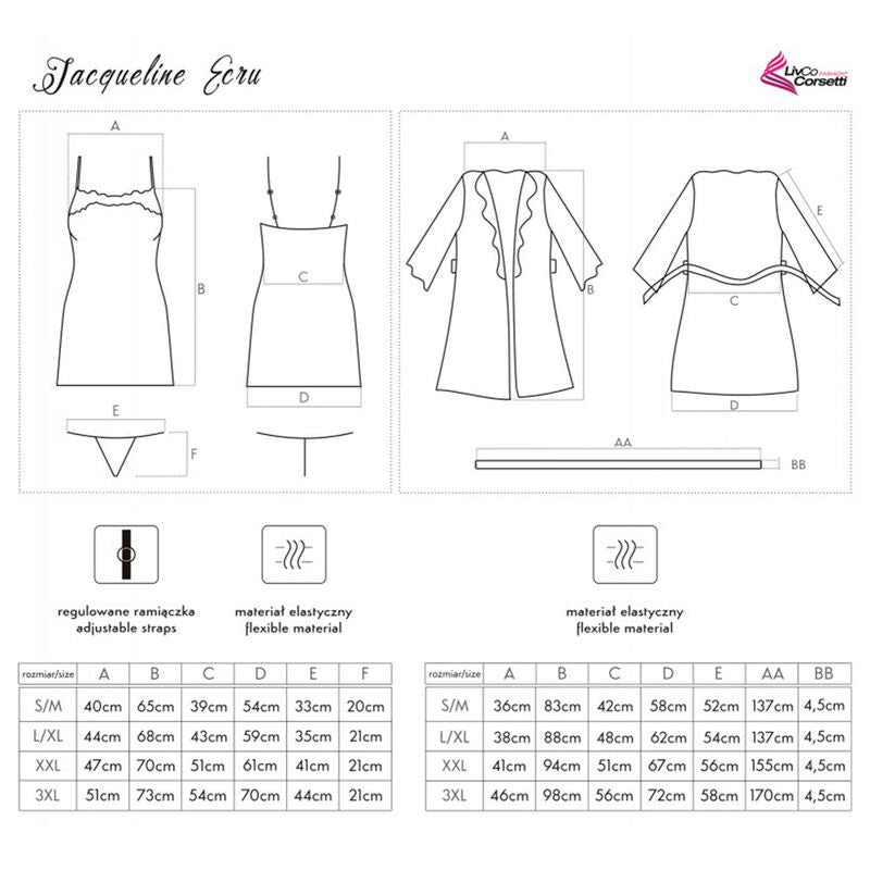 LIVCO CORSETTI FASHION - JACQUELINE LC 90249 ROBE DE CHAMBRE + CHEMISE + CULOTTE ECRU S/M
