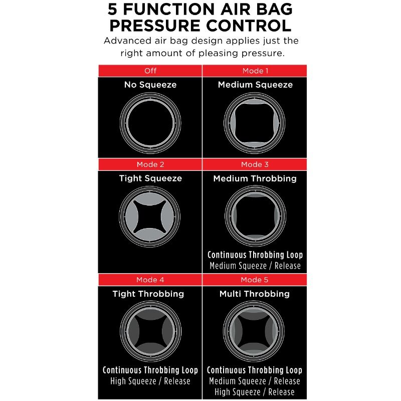 - Contrôle de la pression de l'airbag à 5 fonctions – La conception avancée de l'airbag applique juste la bonne quantité de pression agréable. Appuyez pour activer et maintenez pendant 3 secondes pour relâcher.