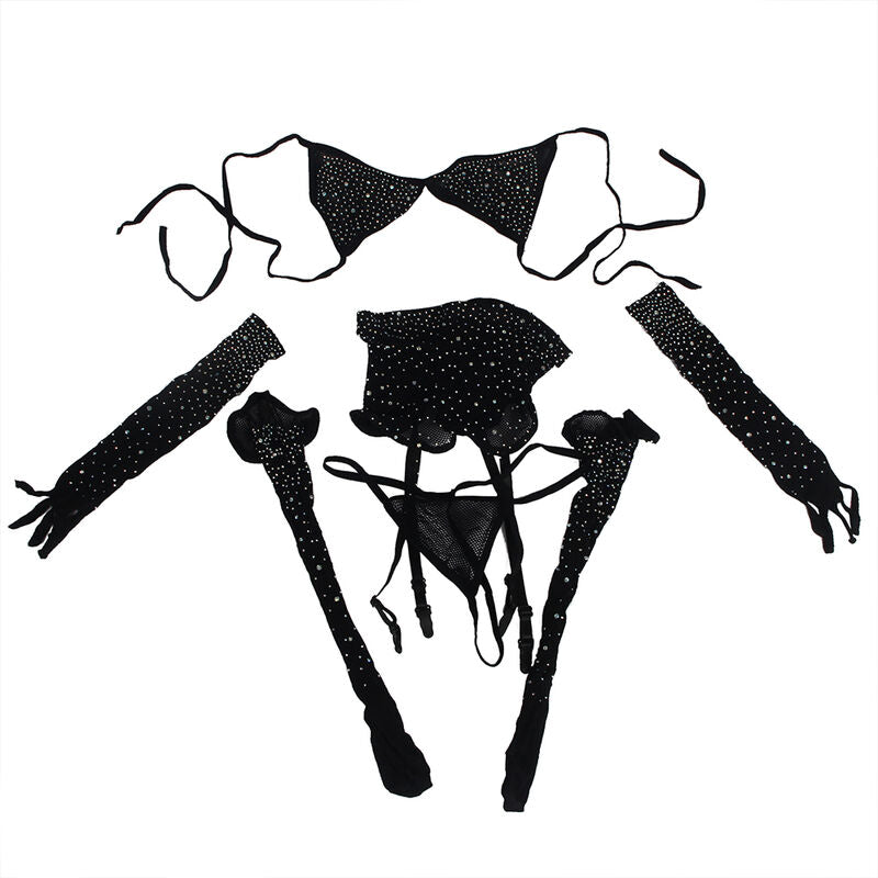 SUBBLIME - 952174 BODYSTOCKING RESILLE AVEC GANTS ET DIAMANTS NOIR TAILLE UNIQUE